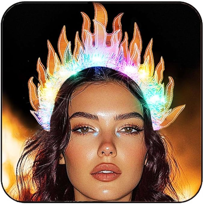 GORTIN Light up Fire Flame Headband Glow Costume Headpiece Cosplay Rave Hair Accessories for Women